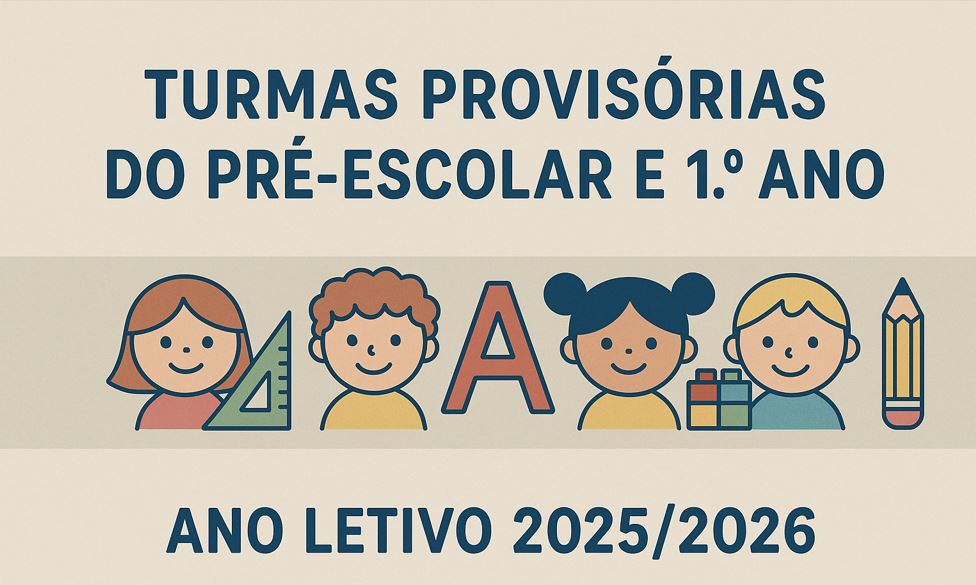 Informamos toda a comunidade educativa que já se encontram disponíveis as turmas provisórias do Pré-Escolar e do 1.º Ano para o próximo ano letivo.