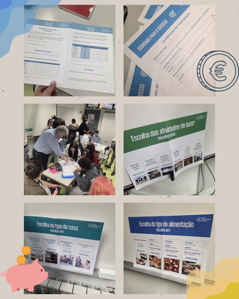 No âmbito das disciplinas de Cidadania e Desenvolvimento e TIC, da responsabilidade das professoras Alexandra Ferreira e Rute Pinheiro, os alunos da turma E9E participaram numa atividade dedicada à Literacia Financeira, integrada no programa Economia para o Sucesso, da Junior Achievement Portugal, dinamizada pelo Dr. Marco Real, colaborador do Banco Santander.