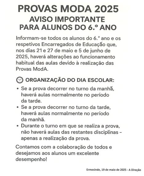 AVISO – Provas ModA 2025 (6º ano) Maio 26, 2025Maio 22, 2025 secerme1 Share this: Share on Facebook (Opens in new window) Facebook Share on X (Opens in new window) X Like this:Like Loading...