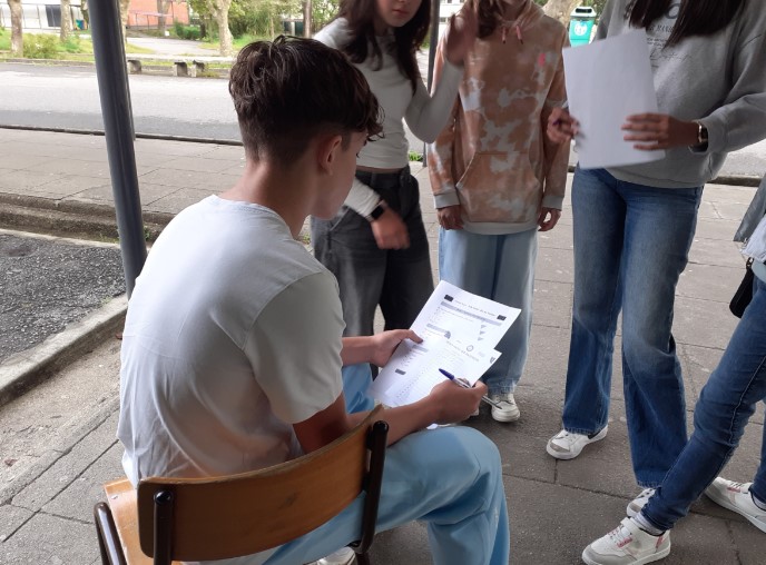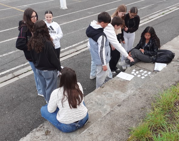 Durante a manhã, realizou-se um PeddyPaper, destinado a alunos do 7ºano – turmas A, C, D e F. Esta atividade foi desenvolvida com a colaboração de alunos do ensino secundário, das turmas F, do 10º ano e turma G, do 12º ano que estiveram nos postos de controlo. Os participantes foram acompanhados pelas respetivas professoras.
