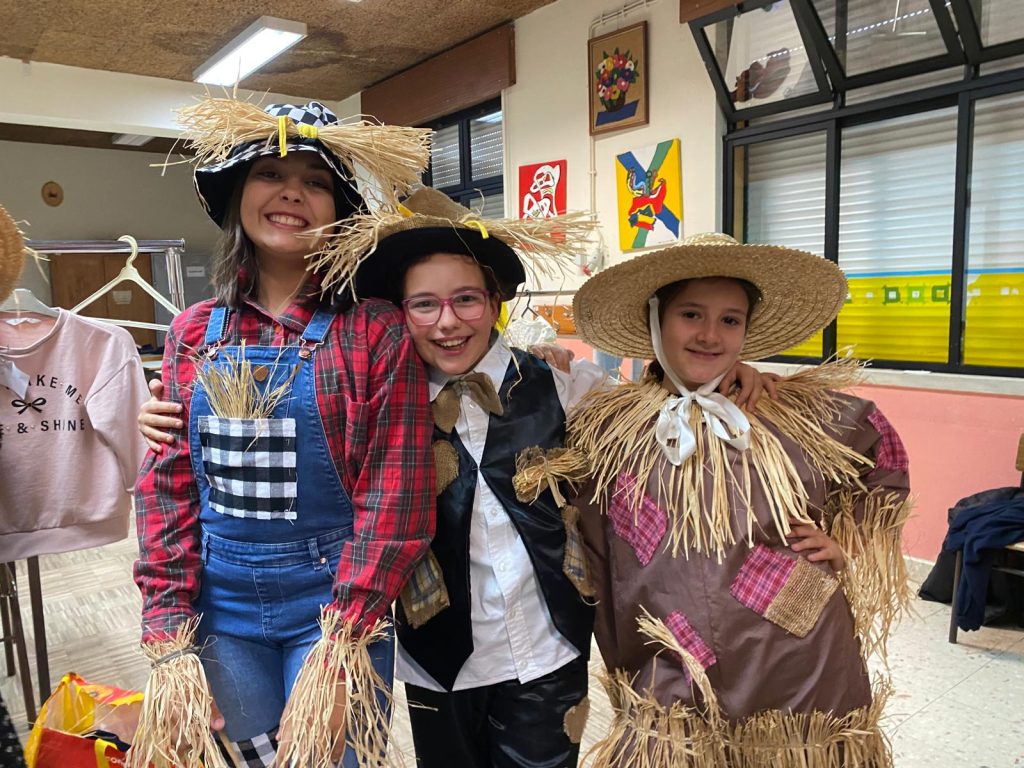 A escola “vestiu-se” de espantalhos, trajes regionais, cestas de vime, chapéus de palha, camisas de xadrez e lenços típicos da etnografia local.