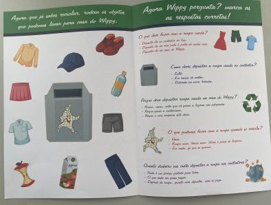 A sessão teve início com a narração do conto “A Viagem de Wippy”, uma história pensada para ajudar as crianças a compreender o percurso da roupa usada e a relevância de pequenos gestos do quotidiano, como o depósito correto de peças de vestuário e calçado nos contentores apropriados. Esta abordagem permitiu trabalhar valores ambientais, estimulando a responsabilidade individual e coletiva.