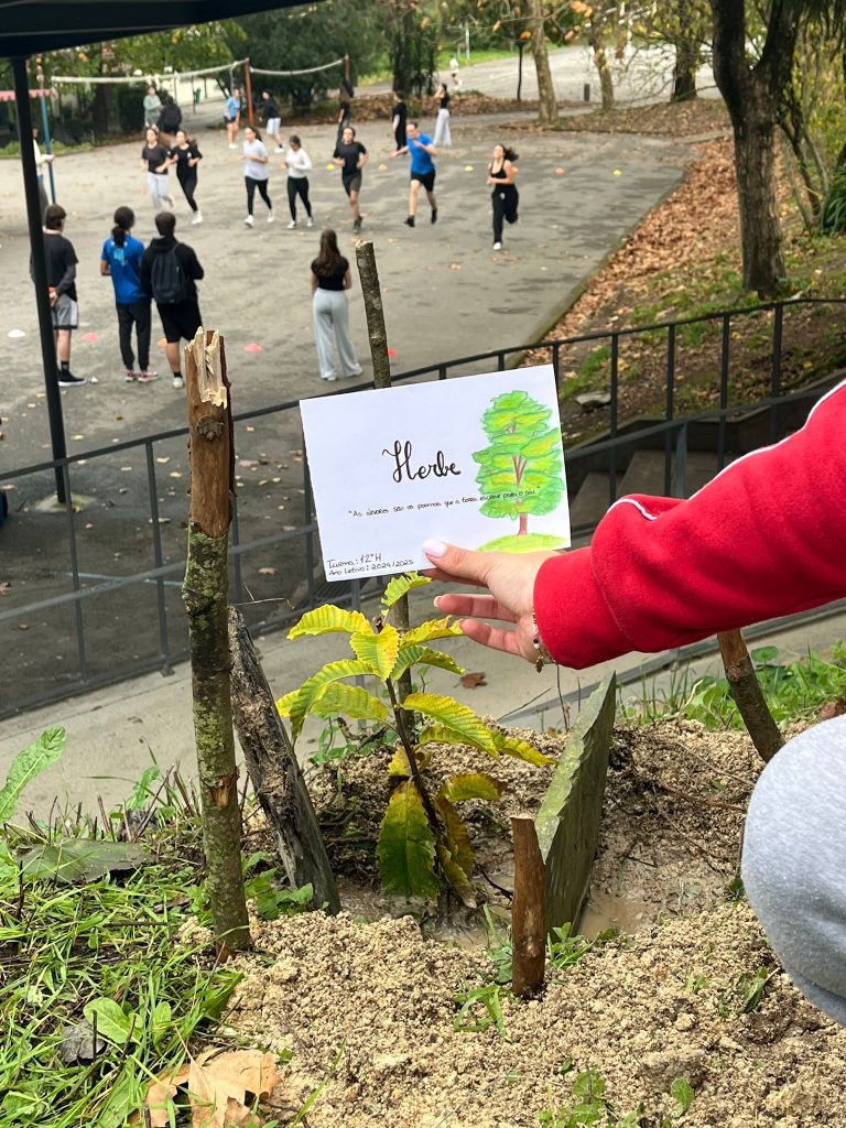 Esta atividade promove a ecologia e sustentabilidade, valores que a escola tanto defende e exalta. A turma pretendeu, igualmente, deixar a sua marca no recinto escolar, dado que este ser vivo demorará o seu tempo a crescer…