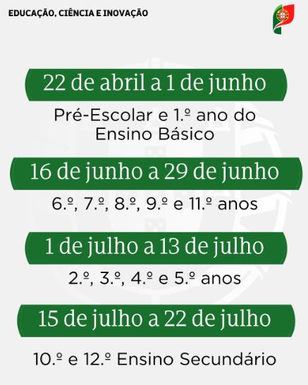 O processo decorre em diferentes períodos, consoante o ano de escolaridade: