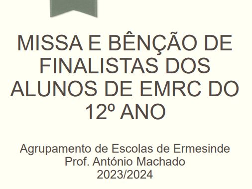 MISSA E BÊNÇÃO DEFINALISTAS DOSALUNOS DE EMRC DO 12º ANO Junho 4, 2024Junho 5, 2024 secerme1 MISSA E BÊNÇÃO DEFINALISTAS DOSALUNOS DE EMRC DO 12º ANO (consultar atividade) Share this: Share on Facebook (Opens in new window) Facebook Share on X (Opens in new window) X Like this:Like Loading...
