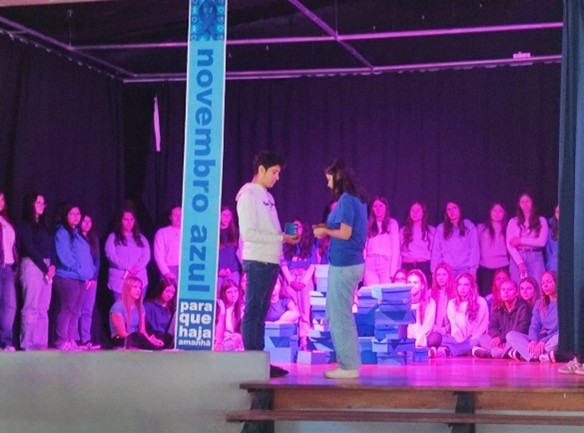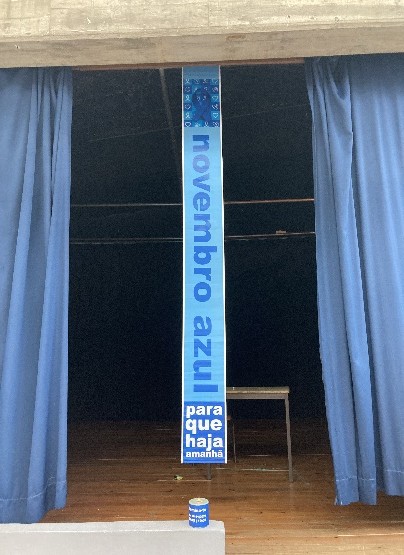 Assim no dia 24, no polivalente, foi feita uma performance de sensibilização para a prevenção do cancro no Homem e promoção do novembro azul e, no dia 26, também, sob a coordenação dos docentes do Departamento de Expressão Artística: Ana Marinho, Edna Carvalho, Eugénia Sebastião e Paulo Lage que, prontamente, se disponibilizaram para realizar o desafio, os alunos das turmas 10º, 11º e 12º AE (Ação Educativa), executaram uma Performance Artística, durante o intervalo da manhã, no palco do Polivalente.