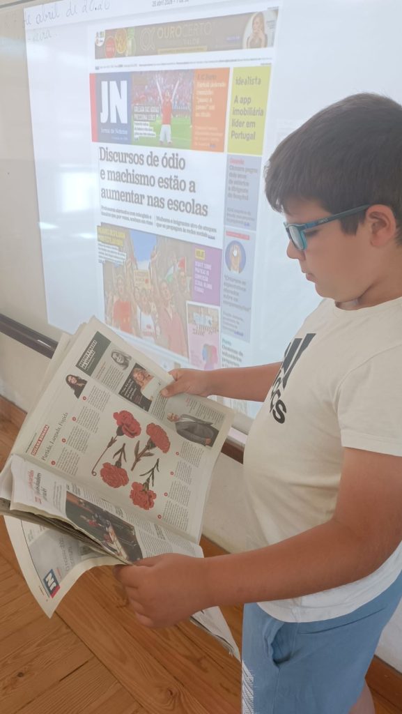 A exploração mediática não ficou por aqui. A leitura estendeu-se a outras temáticas fundamentais, com especial destaque para a importância histórica e social do 25 de Abril. Compreender a liberdade através das notícias de ontem e de hoje permitiu reforçar nos alunos o sentido de memória e a valorização da democracia.