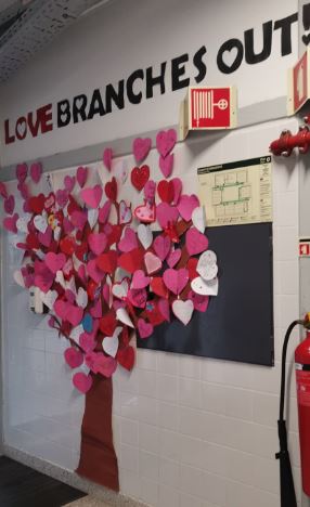 Foram colocadas árvores simbólicas em diferentes espaços da escola, que ganharam vida com corações decorados pelos alunos. Cada coração foi personalizado e preenchido com mensagens de carinho, amizade e gratidão, escritas nas diferentes línguas estrangeiras lecionadas.