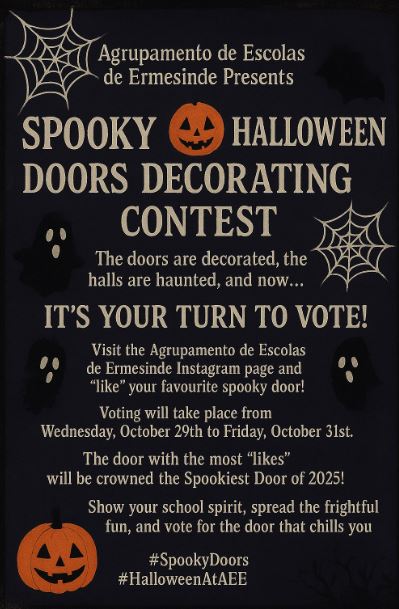 Visit our school’s Instagram page @agrupamento_escolas_ermesinde, and vote for your favourite spooky door by giving it a like❤️. The door with the most likes will be crowned the winner!